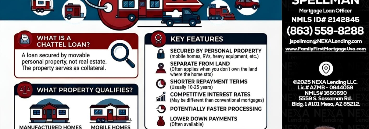 Hi, my name is Joe Spellman. I’m a Loan Officer offering personalized mortgage solutions, fast customized quotes, great rates and service with integrity. If you’re interested in learning more about the Chattel loan or any other, just let me know and I’ll walk you through your options.