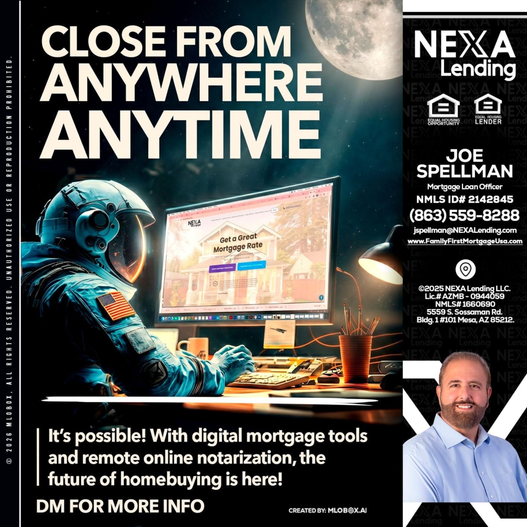 CLOSE FROM - Joe Spellman -Mortgage Loan OriginatorHi, my name is Joe Spellman. I’m a Loan Officer with NEXA Lending LLC., offering personalized mortgage solutions, fast customized quotes, great rates and service with integrity.