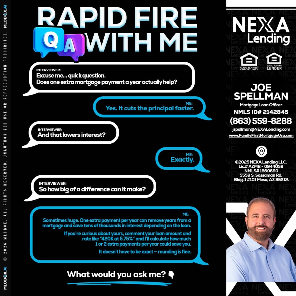 RAPID Q&A - Joe Spellman -Mortgage Loan OriginatorHi, my name is Joe Spellman. I’m a Loan Officer with NEXA Lending LLC., offering personalized mortgage solutions, fast customized quotes, great rates and service with integrity.