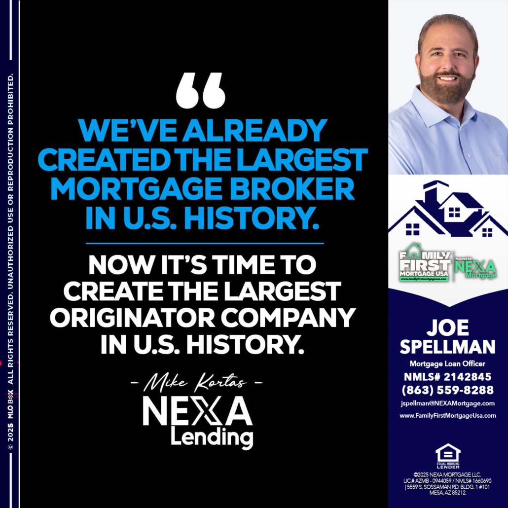 Hi, my name is Joe Spellman. I’m a Loan Officer with NEXA Mortgage LLC., offering personalized mortgage solutions, fast customized quotes, great rates and service with integrity.