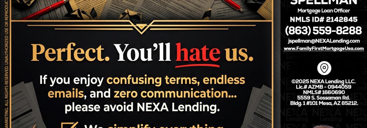 Hi, my name is Joe Spellman. I’m a Loan Officer with NEXA Lending LLC., offering personalized mortgage solutions, fast customized quotes, great rates and service with integrity.
